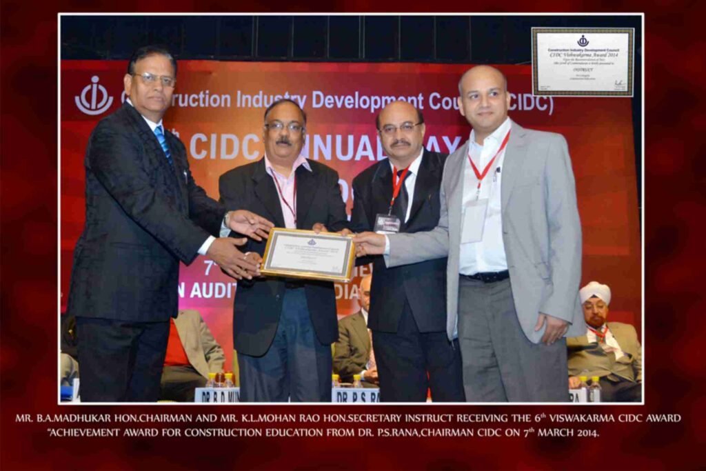 Awards & Recognition 2015 – Rotary BSE (Small & Medium Enterprises National Award For Skill Development) 2015 – Appreciation letter (World Youth Skill Day” by CIDC, New Delhi) 2014 – 6th Vishwakarma Award (Achievement for Construction Education) 2013–5th Vishwakarma Award (Partner in Progress)
